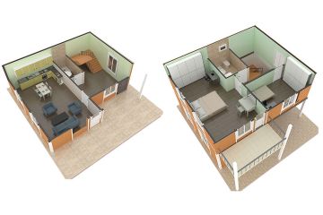 Yenilikçi tasarım, güven, ergonomi ve konfor lüks konuttan istenilen tüm beklentiler 112 m2 prefabrik villa modelinde. Dört mevsim iklimlendirme konfor ayrıcalıkları da bu villada. Girişte genişçe bir salon üst katta iki ayrı oda yapı modelinin geniş mekan sunumunu yansıtıyor. Zemin katta salonu bütünleyen veranda üst katta ebeveyn yatak odasına balkon olarak ekleniyor. Dış görünüm estetiği ve en iyi ergonomide 2+1 plan yerleşimiyle 112 m2 prefabrik villa seçiminize özel.