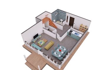 Müstakil ve lüks konut avantajlarının en iyi şekilde yansıtıldığı 126 m² prefabrik villa gerçek mutluluğa kapı aralıyor. 30 m² geniş salonda ailenizle birlikte yaşam ayrıcalıkları sizi bekliyor. Kendinize zaman ayırmak istediğiniz her an salon yanındaki küçük oda çok hoşunuza gidecek. Mimari tasarımda zemin ve üst kata sıklıkla yerleştirilen pencereler prefabrik villayı aydınlıkla buluşturuyor. Doğal aydınlık size iyi gelecek.