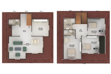Modern mimarinin albenili tasarımı 147 m² prefabrik villa ile beğeninize özel. Cumba ve rumba çıkıntılarıyla desteklenen tasarım geleneksel mimarinin vaz geçilmezlerinin yeniye aktarımının güzel bir örneği. 147 m² büyüklük 3+1 konut tipinde iç yaşam alanlarına dağılımı tasarım mimarlarına çok zevkli geldi. Sınırlayıcı etkenler olmadan iç yaşam alanlarına maksimum genişlikteki bölümlemeleri keyifle gerçekleştirdiler. Ortaya kullanım ergonomisi yüksek estetik bir prefabrik villa çıktı.