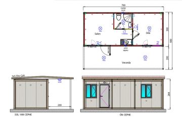 35 m² Konteyner Ev 1+1 Ürün Kesitleri