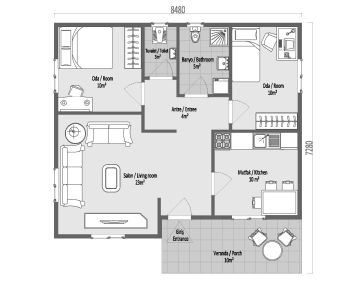 78 m² Çelik Ev 2+1 Ürün Kesitleri