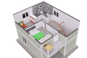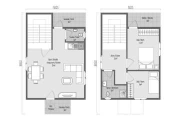 2+1 prefabrik villa konut minimal yaşam tarzına özel tasarlandı. 91 m2’de günlük yaşamın en çok ihtiyaç duyulduğu mekanı salona oldukça geniş yer ayrıldı. Mutfak salonda Amerikan tarzı yerleştirildi. Salondan üst kata çıkıldığında merdiven bitiminde genişçe bir antre yer alıyor. Merdiven çıkış yönünde sağda kapıları antreye açılan iki şirin oda yer alıyor. Ebeveyn odası buraya açılan balkonla destekleniyor. Antrenin bitiminde banyo ve tuvalete yer verilmiş. 91 m2 prefabrik villa hayatın keyfini minimal yaşamda arayanlara özel.