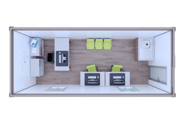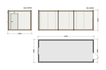 Konteyner kenar şaseleri ve köşe direkleri özel bükümlü, kaynaksız, Paslanmaya Karşı mukavemeti yüksek galvaniz sac malzemelerle civatalı sistem olarak üretilmektedir. Taban şasesini oluşturan U ve C profillerinden üretilerek civatalı sistemle montajı yapılmaktadır. Konulacak zeminin terazide olması gerekmektedir. |