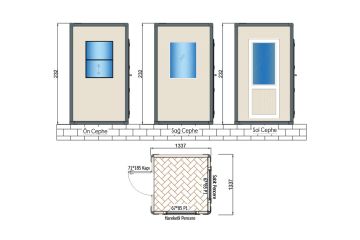 Banko, masa, raf, evye, jaluzi, havalandırma fanı, iç duvar bölmesi ve ilave WC istenmesi gibi opsiyonel aksesuarlar ücret karşılığı yapılmaktadır.